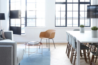 ・ 窓の下に接客テーブル